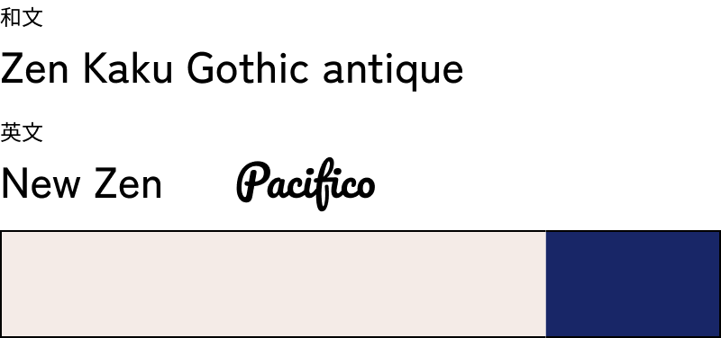 信頼感と親しみやすさを印象付けるため、本文フォントにはZen Kaku Gothic antique。似た雰囲気ながらアクセントをつけるのに見出しではNew Zen、あしらい的要素としてPacificoを使用。配色では温かくて落ち着いた雰囲気を演出するベージュをベースカラ―に、アクセントでネイビーを使うことで信頼や洗練されたイメージを印象付けた。