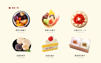 和菓子が人気の老舗菓子店のHPリニューアル案です。地元の食材を活用し、安心・安全なお菓子作りに力を入れるお店で、今回のリニューアルでは地域の菓子店を検索してくるお客様や「お土産に最適な和菓子」を探している30~40代女性をターゲットに、問い合わせのしやすさや、推し商品の魅力を分かりやすく伝えることを重視しました。暖色を基調とした明るく柔らかな配色や、縦書きなどの和のデザイン要素を取り入れ、優しさと清潔感を兼ね備えたサイトを目指しました。